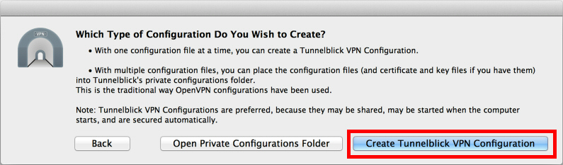 点击 "Create Tunnelblick VPN Configuration" 按钮。